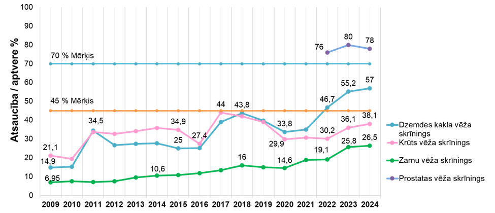 Vēža skrīninga programmu rādītāji Latvijā